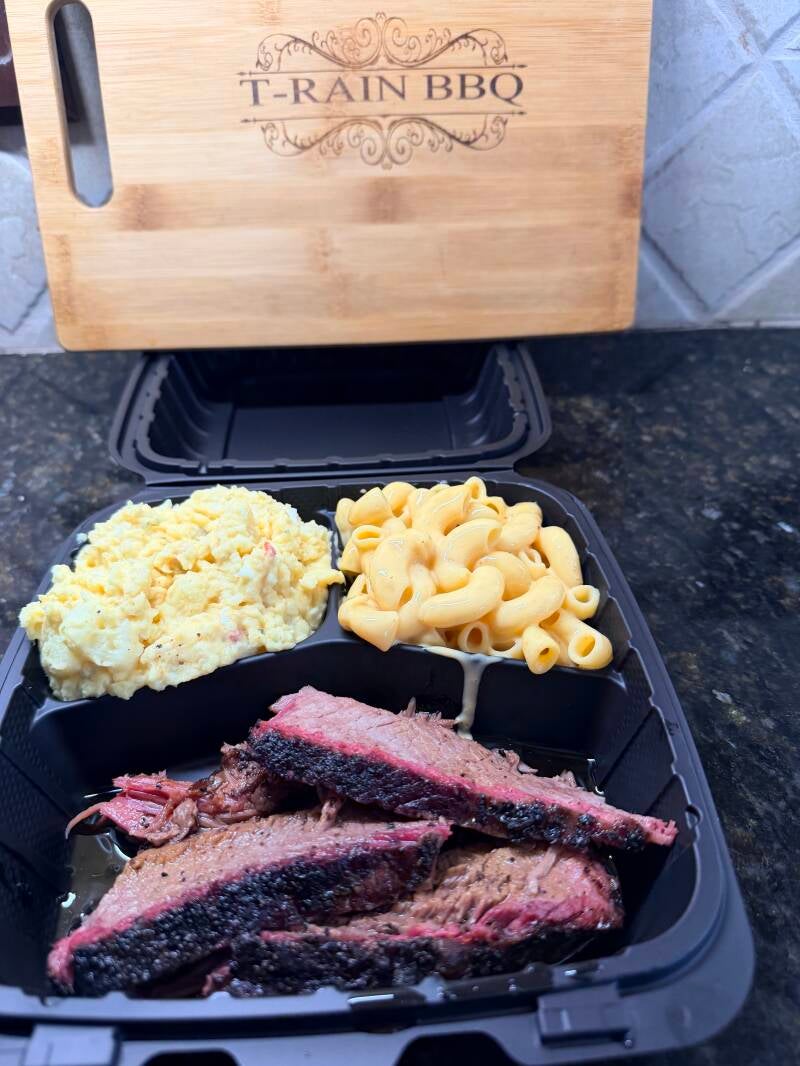 "I can't say enough about the amazing BBQ from T-Rain! The brisket was incredibly tender and the sauce was out of this world. A must-try in Cibolo Tx!"